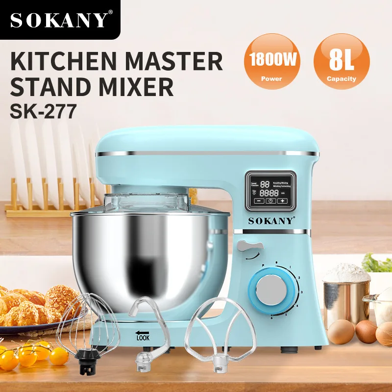 Batidora de pie SOKANY SK-277 con 6 configuraciones de velocidad, capacidad de 8.0L y función de pulso