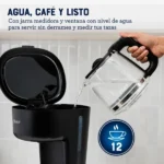 - PREPARACIÓN FÁCIL: Agrega agua y café, presiona el botón de encendido y prepara hasta 12 tazas sin complicaciones. La jarra con medidas te ayuda a servir la cantidad justa