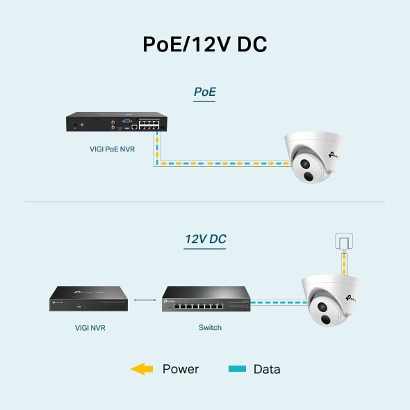 - Alimentación PoE y 12V CC. Elige la manera que mejor se adapta a tu instalación de seguridad.
