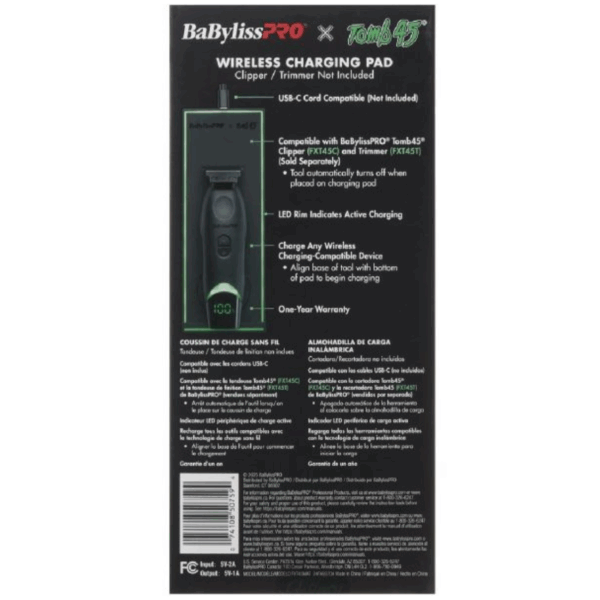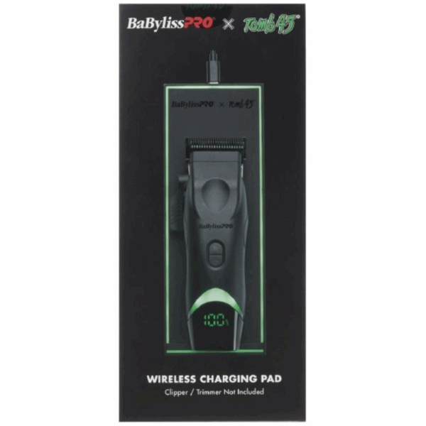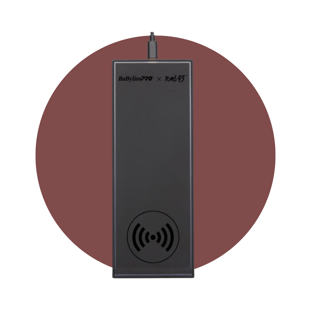 La Almohadilla de carga inalámbrica BaBylissPRO x Tomb 45 (FXT45MAT) es una solución elegante y profesional para mantener tus herramientas siempre listas. Funciona con un cable USB-C (no incluido) y es compatible con las herramientas Tomb 45 (FXT45C y FXT45T), aunque pueden cargarse otros dispositivos inalámbricos también.