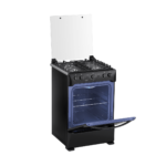 Cocina Indurama Ferrara MaxGrill con 4 quemadores sellados (1 rápido y 3 semi rápidos), encendido electrónico y horno equipado con grill a gas, doble vidrio templado y luz interior. Diseñada para ofrecer eficiencia y facilidad de limpieza, es ideal para hogares que buscan una cocina práctica y funcional.