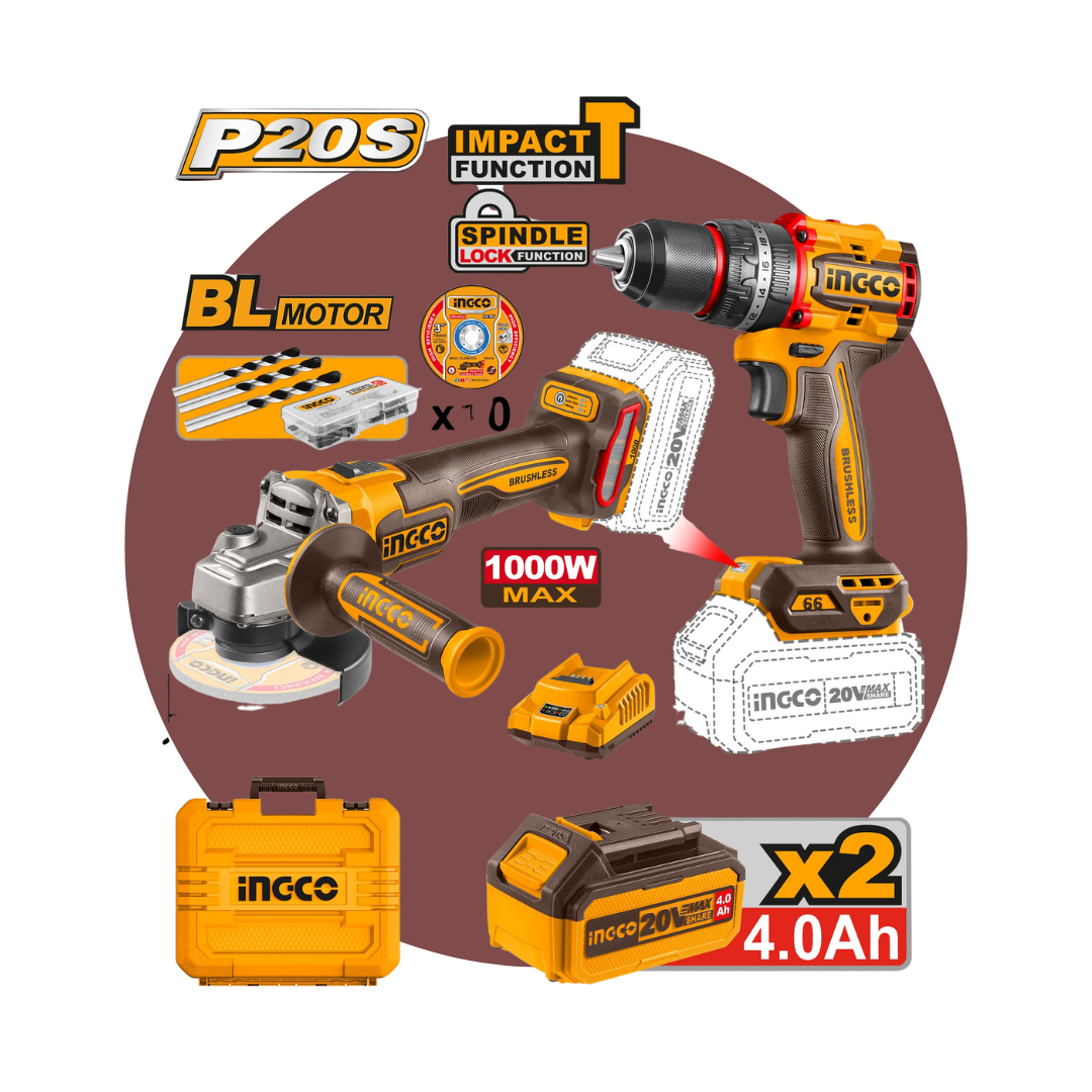El Combo Amoladora + Taladro INGCO es la solución perfecta para quienes buscan potencia y versatilidad en sus proyectos de bricolaje y construcción. Equipado con herramientas de alto rendimiento, este combo incluye una amoladora angular y un taladro inalámbrico, ambos con motores sin escobillas que garantizan una durabilidad excepcional y un rendimiento óptimo.