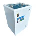 Congelador SMC SMCCG35HB, con una capacidad de 100 litros, diseñado para uso doméstico o comercial. Cuenta con un sistema de rápida disipación de calor al ambiente, función Dual (congela y enfría), y control de temperatura. Incluye una canasta de almacenamiento movible, ruedas de alta resistencia para fácil movilidad, y una tapa de vidrio con seguro para mayor seguridad. Con diseño ahorrador de energía, es ideal para espacios pequeños. Sus dimensiones son compactas y su posición es horizontal.