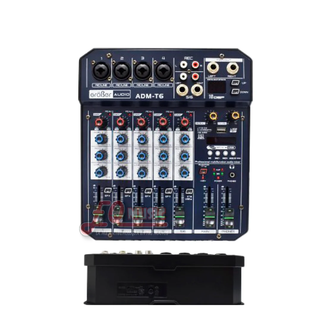 Configuración de 6 Canales: Ofrece control individual para 6 vías de entrada, permitiendo una gestión personalizada del volumen y la mezcla para múltiples fuentes de audio.