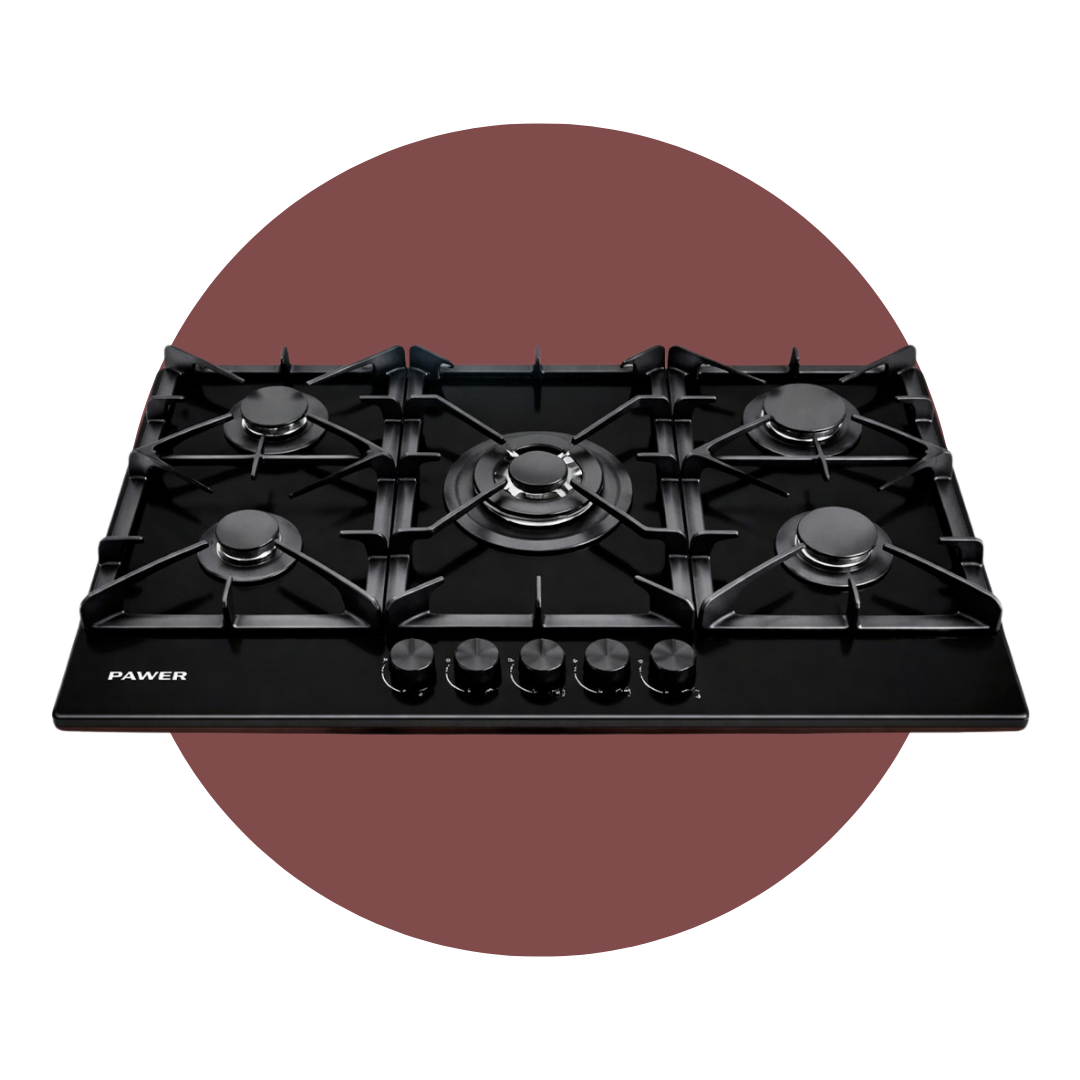 Encimera Pawer 5 Quemadores Vidrio Templado Negro