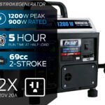 El generador PG1202SA ofrece 1200 vatios de potencia máxima y 900 vatios de funcionamiento, con un amperaje máximo de 8,3 A. Equipado con un motor de dos tiempos de 69 cc y 2 HP, este generador utiliza una proporción de gasolina/aceite de 30:1 para un rendimiento eficiente y fiable. Con un tanque de combustible de 1 galón, este generador puede funcionar hasta 5 horas al 50 % de carga.