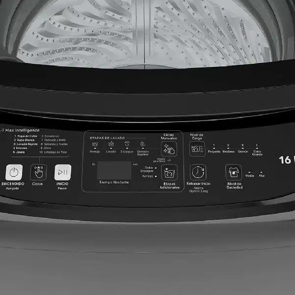 - Control Electrónico Intuitivo: Equipada con un panel de controles electrónicos con Luz LED indicadora de la etapa del ciclo, todo en idioma español para una fácil operación.