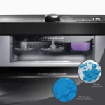 Exclusiva Tecnología Jet&Clean: Dispensador autolimpiante con tecnología Jet&Clean, que mediante fuertes chorros de agua en el dispensador diluye el jabón y el suavizante hasta en un 100%5 antes de entrar en contacto con la ropa, haciéndola penetrar uniformemente en los tejidos, evitando manchas y relavado