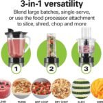 La Licuadora 3 en 1 Hamilton Beach 58163 es un electrodoméstico multifuncional que combina licuadora personal, procesador de alimentos y sistema de mezcla potente en un solo dispositivo. Con un motor de 700 W de potencia pico y tecnología de acción de onda, garantiza mezclas uniformes y texturas perfectas. Ideal para preparar batidos, salsas, picar alimentos y más, su diseño fácil de verter y limpiar la hace práctica para el día a día.