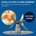 -Licuadora duradera que te permite triturar, picar, licuar y batir los ingredientes más duros y difíciles.