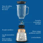 -Vaso de vidrio de 1.75 litros, resistente a ingredientes hirviendo, para que no tengas que esperar a que los ingredientes calientas se enfríen para usar la licuadora.