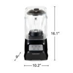Similar a las licuadoras silenciosas comerciales, este protector acústico de dos piezas reduce el ruido durante el licuado, incluso con ingredientes congelados. Cuenta con bisagras para facilitar el acceso a la licuadora y se retira para su limpieza. La carcasa del motor y el diseño silencioso del ventilador también contribuyen a atenuar el ruido.