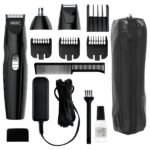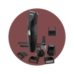 - 3 Accesorios: Cuchilla de recorte (30 mm), afeitadora de lámina y cabezal rotativo para nariz y orejas.