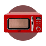 Microondas RCA modelo Vintage, con una capacidad de 20 litros, diseño moderno en color rojo y dimensiones compactas (26 cm de alto x 33 cm de ancho x 33 cm de profundidad). Cuenta con pantalla digital, reloj digital, función de cocción rápida, función de descongelar y bloqueo de seguridad para niños. Ideal para cocinar, calentar y descongelar alimentos de manera rápida y segura.