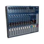 - 12 Canales de Mezcla: Incluye 8 canales mono y 2 estéreo, ideal para diversas configuraciones de sonido.