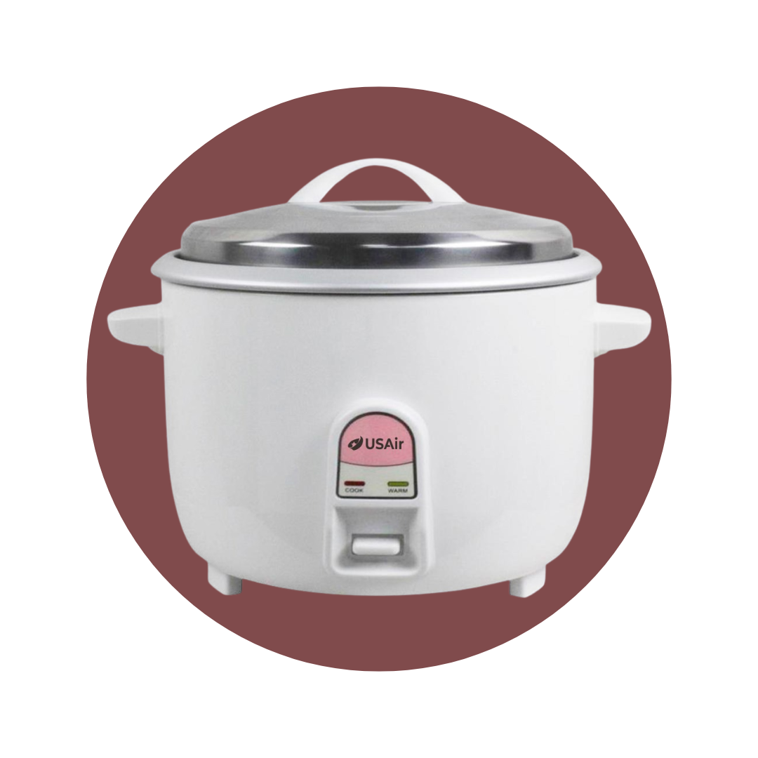 La OLLA ARROCERA USAIR 3.6 LITROS CFXB130-D es un electrodoméstico de alta capacidad (15 tazas) diseñado para la comodidad y seguridad, destacando su recubrimiento antiadherente y fácil operación.