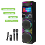 El PARLANTE WIFI CON PANTALLA ANDROID TÁCTIL 2*12 PULGADAS es un sistema de sonido portátil con 120W RMS de potencia, que integra una pantalla táctil Android de 15.4″ y ofrece conectividad Wi-Fi y Bluetooth, ideal para entretenimiento multimedia y karaoke.