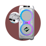 -Bluetooth -Canal stereo -Parlante 12*2″ -Conexion MP3 -Panel digital -Microfono -Control remoto