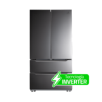 Refrigeradora French Door Croma de 671 litros con diseño moderno en acabado croma y lámina antihuellas. Equipada con compresor Inverter, refrigerante R600, panel digital de temperatura y funciones avanzadas como Super Cooling y Super Freezing. Ideal para hogares que buscan eficiencia energética, organización avanzada y un diseño elegante.