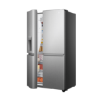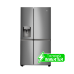 Refrigeradora Side by Side Croma de 669 litros con diseño moderno en acabado croma o negro. Equipada con compresor Inverter, refrigerante R600a, sistema Multiflow 360° para circulación uniforme del aire y control de temperatura digital. Cuenta con alarma de puerta, iluminación LED y organización avanzada. Ideal para hogares que buscan eficiencia energética, funcionalidad y un diseño elegante.