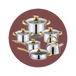 – 1 sartén de 24cm -1 olla para sopa de 18cm- 1 olla para sopa de 20cm- 1 olla para sopa de 24cm- 1 olla de un solo mango de 16cm.