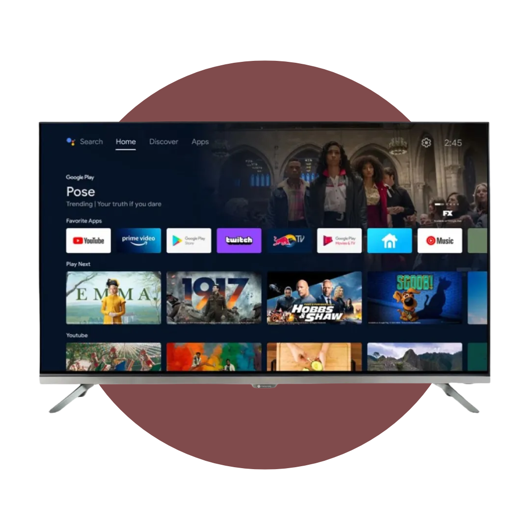 El TELEVISOR 65″ MOTOROLA GOOGLE TV (Modelo 65MGFUHD) es un Smart TV 4K UHD LED de diseño plano con tasa de refresco de 60 Hz, que opera bajo el sistema Google TV y ofrece Comando de Voz y un sistema de sonido Dolby Digital con 24W de potencia.