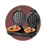 -Potencia: 1100W. -Voltaje: 11OV – 60Hz. -Permite cocinar 2 waffles simultáneamente -Indicador led -Cuerpo resistente al calor -Superficie antiadherente