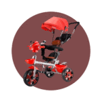 -Canastilla trasera -Pedal reforzado -Toldo -Guiador COLORES: ROJO – AZUL – ROSADO